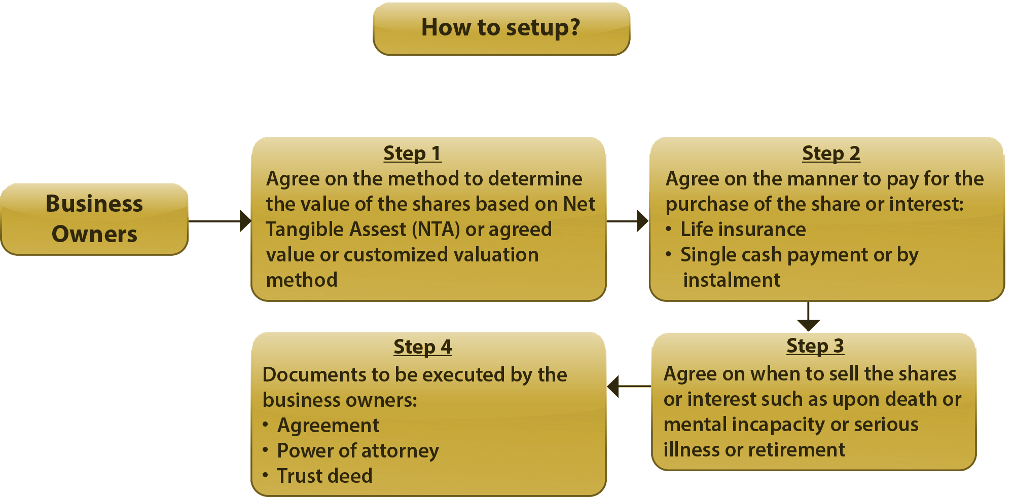 By using life insurance, the purchase of the shares/interest becomes very affordable, minimizing the need to borrow or strain family finances for the purchase. More importantly, it ensures that the other co-owner(s) have the necessary funds to pay for the shares/interest.