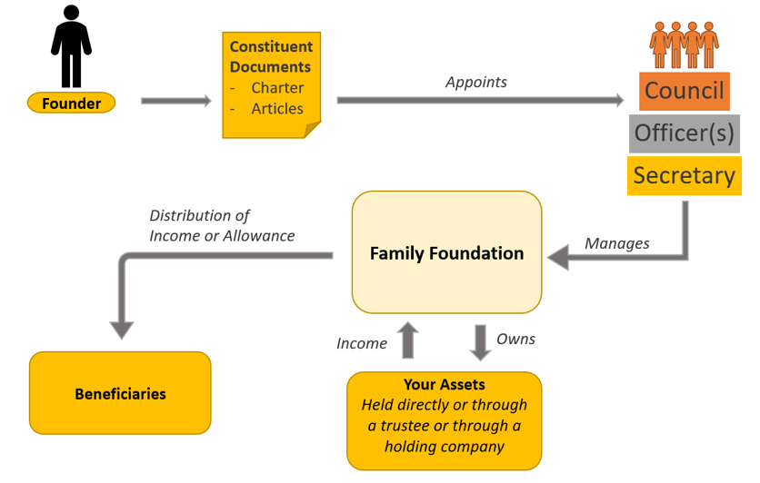 A foundation is an independent legal entity, usually established to hold assets with the objective of managing the assets for the benefit of a class of persons on a contractual basis. It is typically used for private wealth management and charitable purposes. It provides both the benefits of a trust and the structure of an independent corporation. It looks like a company and works like a trust. It is set up in Labuan and is governed under the Labuan Foundation Act 2010.